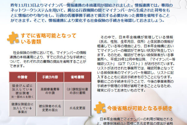 そうわ通心 3月号 マイナンバーの利用で 省略が可能となる社会保険の手続き