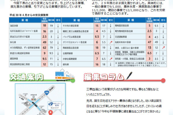 そうわ通心 4月号 平成30年度の 労災保険率は変更、 雇用保険料率は据え置き