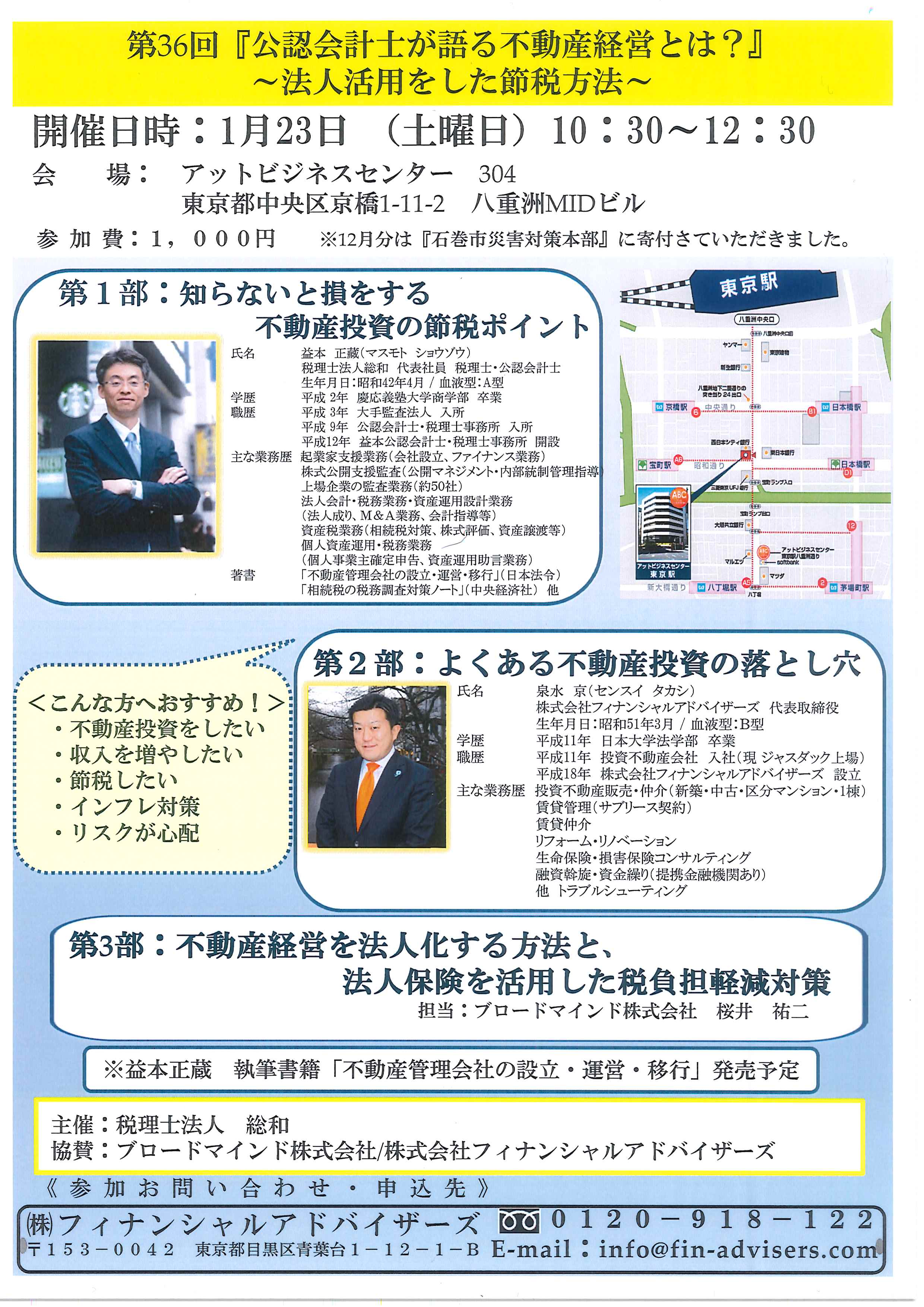 第36回『公認会計士が語る不動産経営とは?』 ~法人活用をした節税方法~