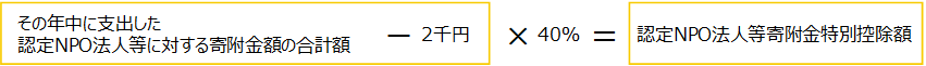 ② 認定NPO法人等寄附金特別控除は次の算式で計算します。