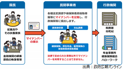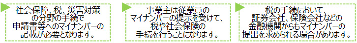 事業者は税や社会保障に関する手続書類に従業員などのマイナンバーを記載して、役所に提出!