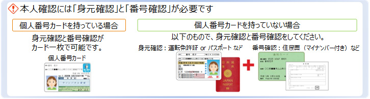 取得の際は他人のなりすまし等を防止するため、厳格な本人確認を行います。