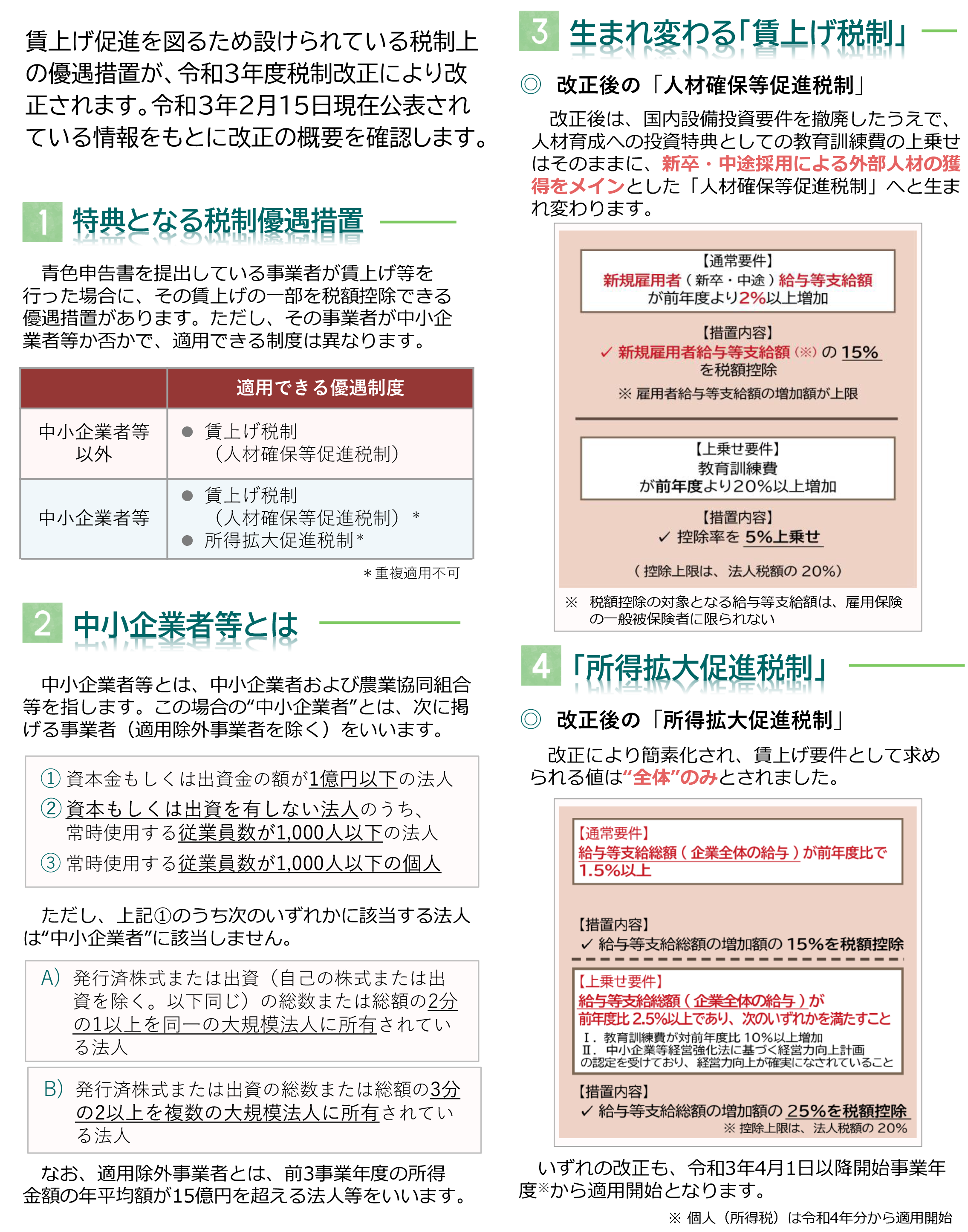 賃上げ促進を図るため設けられている税制上の優遇措置が、令和3年度税制改正により改正されます。令和3年2月15日現在公表されている情報をもとに改正の概要を確認します。