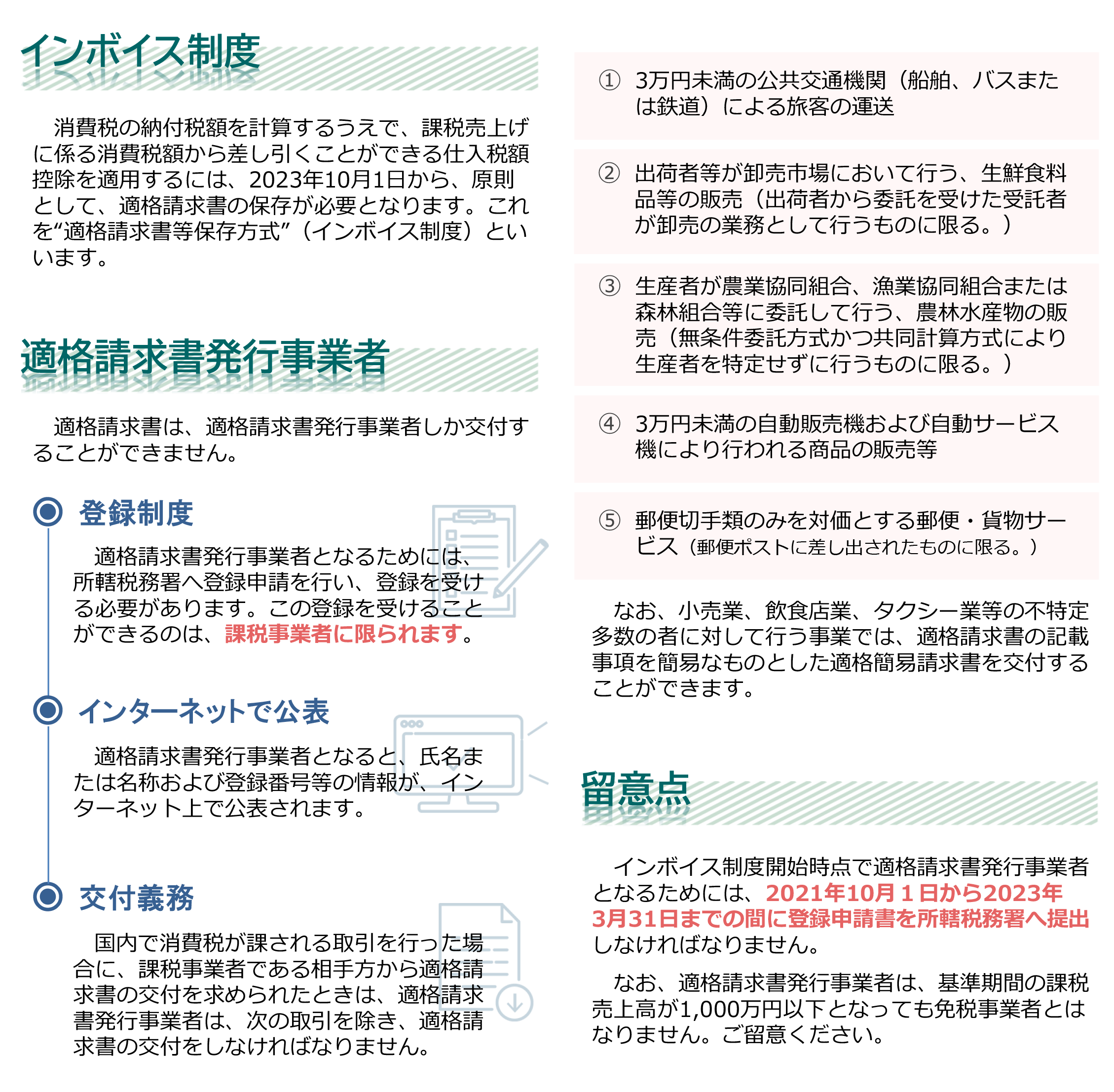 2023年10月1日から、いわゆる「インボイス制度」が始まります。インボイス制度を適用できる請求書等の発行には、適格請求書発行事業者の登録を行う必要があります。 この登録申請が2021年10月1日からスタートします。