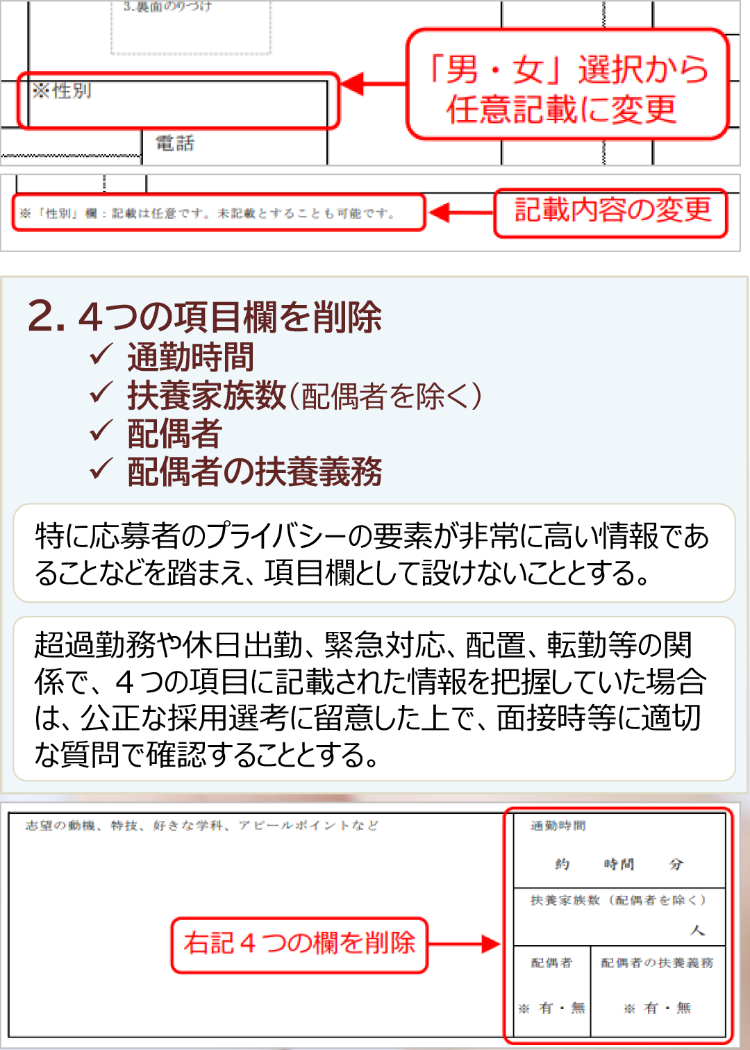 厚生労働省の新たな履歴書様式例と、従来のJIS規格様式例の相違点は次の2点です。